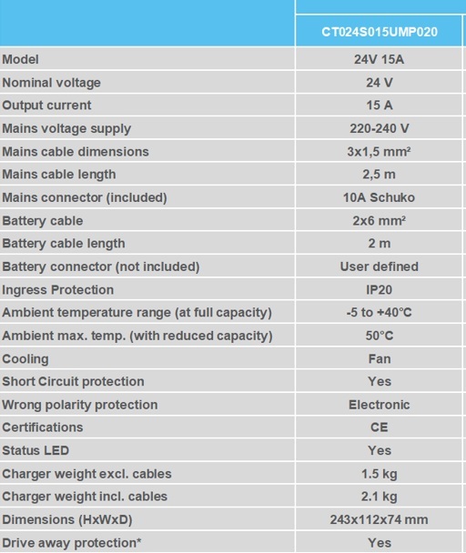 Exide 24V 15Ah Lithium lader